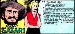 '''Johnny Safari''' | '''Johnny Safari''' Bande quotidienne publiée à l'origine dans "France-Soir" sous le titre ''Hommes et Bêtes'' de 1956 à 57, puis dans diverses revues (sous le nom de [[Johnny Safari]] dans [[Samedi-Jeunesse]], [[Banga (2e série)]], [[Joker]]) dessinée par [[José Larraz]], qui signe Gil, et [[José Laffond]]. | ||